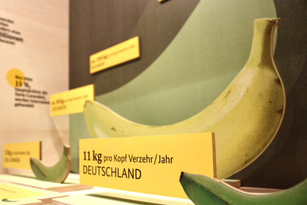 Die Ausstellung „BananaRama – Eine Forschungsreise zur Banane“  beleuchtet die Welt der Banane vom Labor bis zum Acker, von ihrer Biologie bis hin zu ihrer großen Vielfalt und eröffnet dabei spannende Einblicke in die Bananenforschung: Wie lassen sich neue Sorten züchten? Was haben Drohnen mit Bananenanbau zu tun? Und warum ist Gleichberechtigung in der Landwirtschaft ein Thema?
