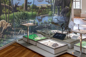 Im Zuge der Renovierung des Saals wurde auch das Ausstellungskonzept leicht verändert. Der Schwerpunkt liegt jedoch nach wie vor auf der Präsentation von Vogelpräparaten. Um sich dennoch wieder dem Anspruch an das ehemalige, universelle Naturalienkabinett zu nähern, wurden wieder Sammlungsstücke aus den Bereichen Mineralogie, Gesteinskunde, Paläontologie sowie Botanik eingefügt. Auch das „Pomologische Kabinett“ und die […]